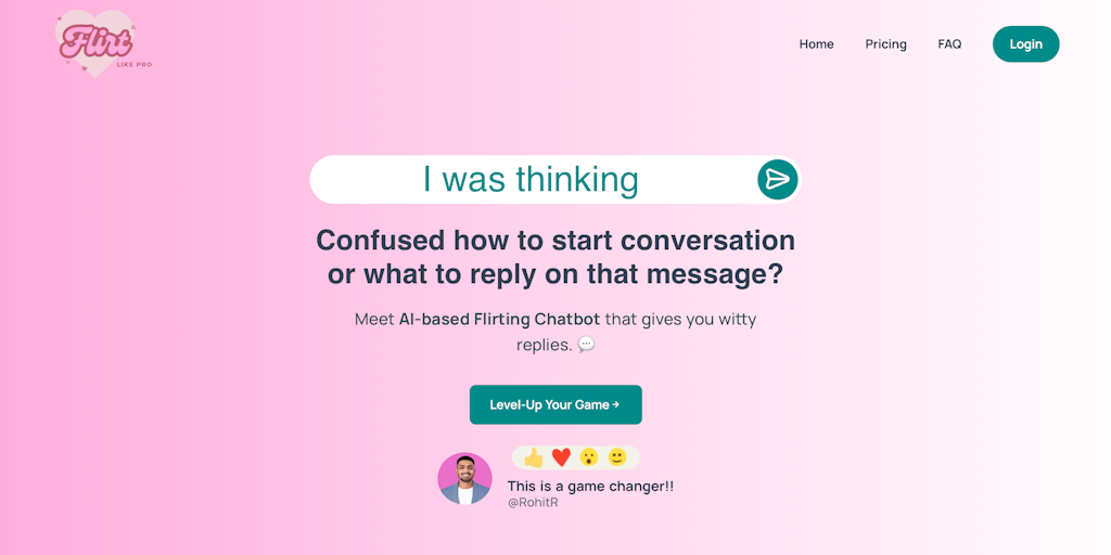 Flirt Like Pro - AI-based Flirting Chatbot that gives you witty replies. 💬 | Product Hunt