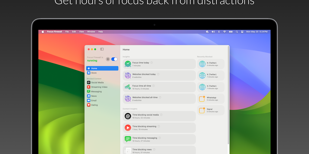 Focus Firewall helps reclaim time, improve online habits and context switching by blocking distracting websites & apps during your working hours. People average 2 hours a day on social media/streaming