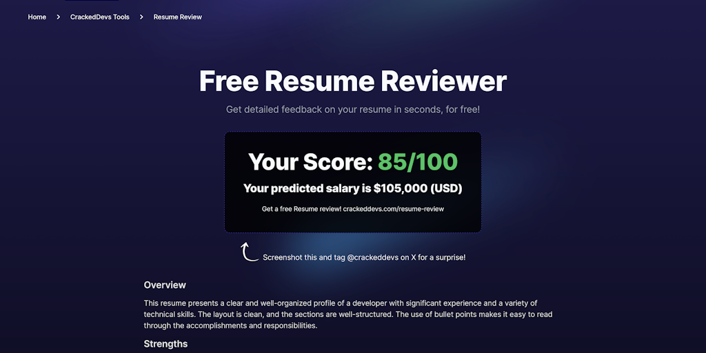 Enhance your resume with CrackedDevs' detailed feedback tool! Get personalized, actionable advice to improve your resume and stand out to potential employers!