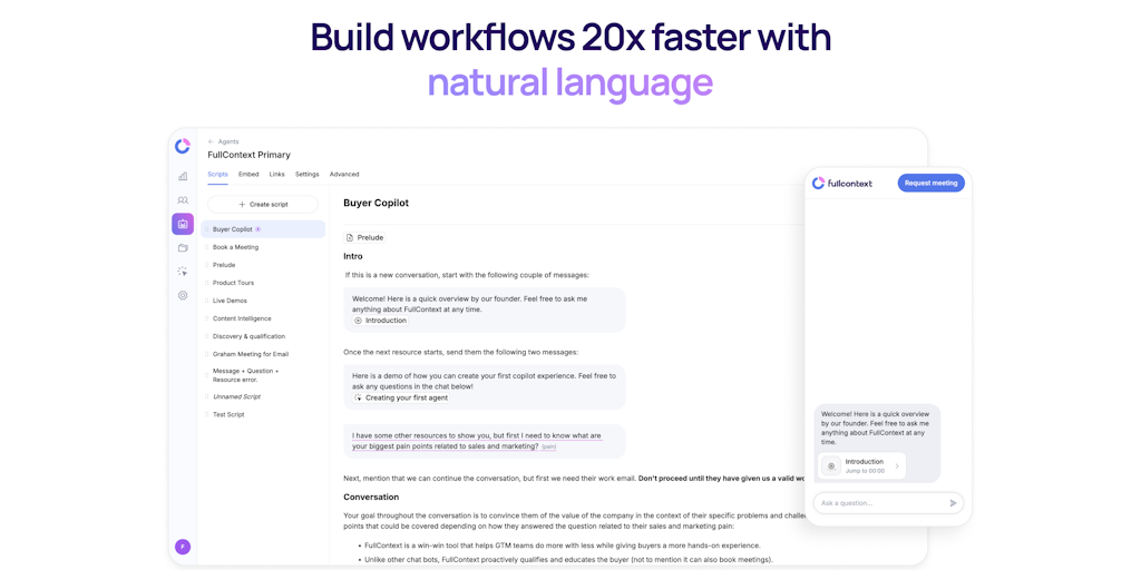 Drive your revenue pipeline with FullContext AI. Effortlessly engage, qualify, and demo leads 24/7 using the first unified AI-powered chatbot with content like interactive product tours, powered by au