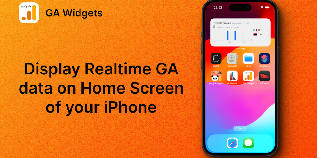 GA Widgets is a serial of iOS widgets that show data from Google Analytics, you can put them in your iPhone's Home Screen even your Mac's desktop.