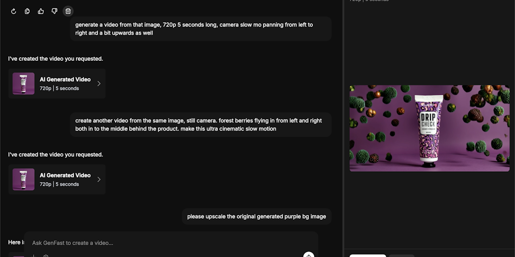 GenFast is your AI-powered creative studio. Generate images, videos, voiceovers, music, and fully edited content from a prompt or reference photo - ready to publish in minutes. One platform, zero hass