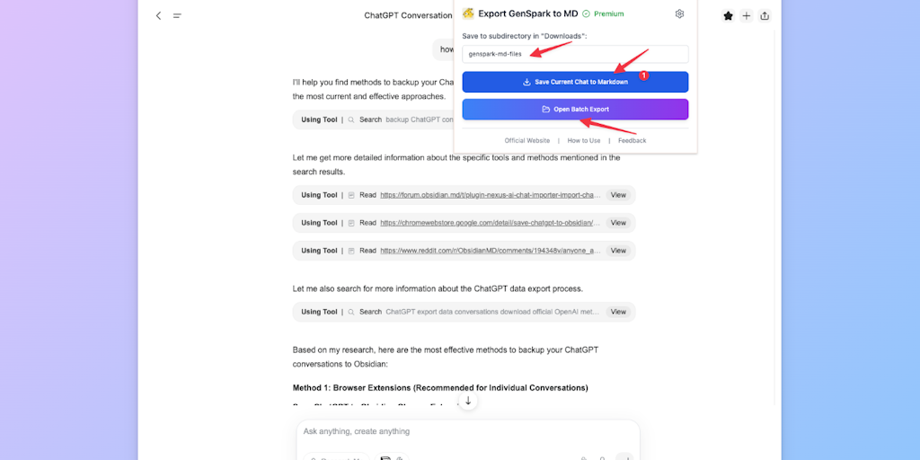 GensparkAI to Obsidian: Batch export & download genspark conversations to markdown | Product Hunt