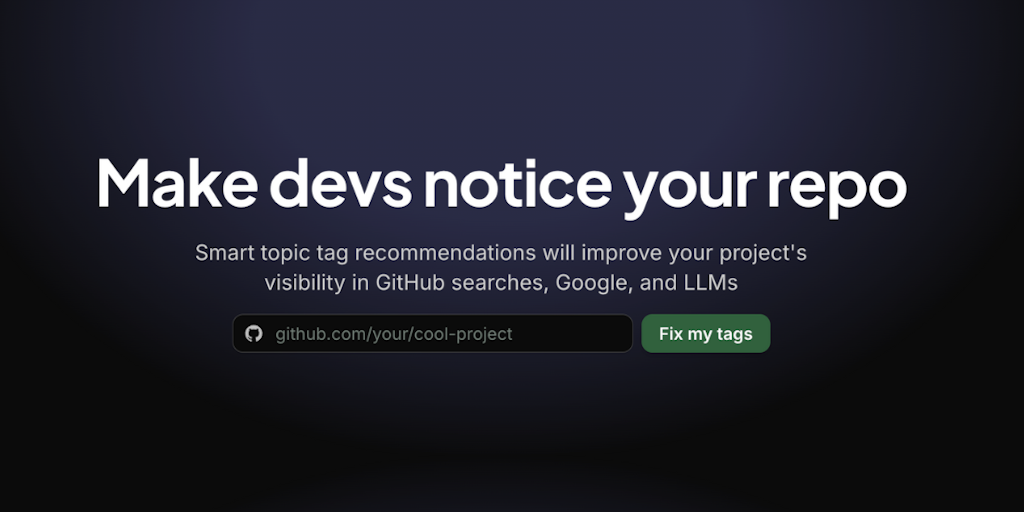 Improve your repo’s visibility in GitHub searches, Google, and LLMs. This free tool audits your repository to give you topic tag suggestions and other recommended action items to help developers find