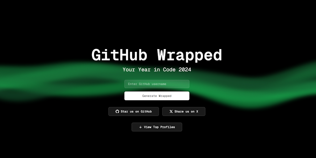🎉 GitHub Wrapped celebrates your year in code! Enter your GitHub username at https://githubwrapped.xyz to get a stunning report of your commits, top repos, and language trends. No login needed—save, s