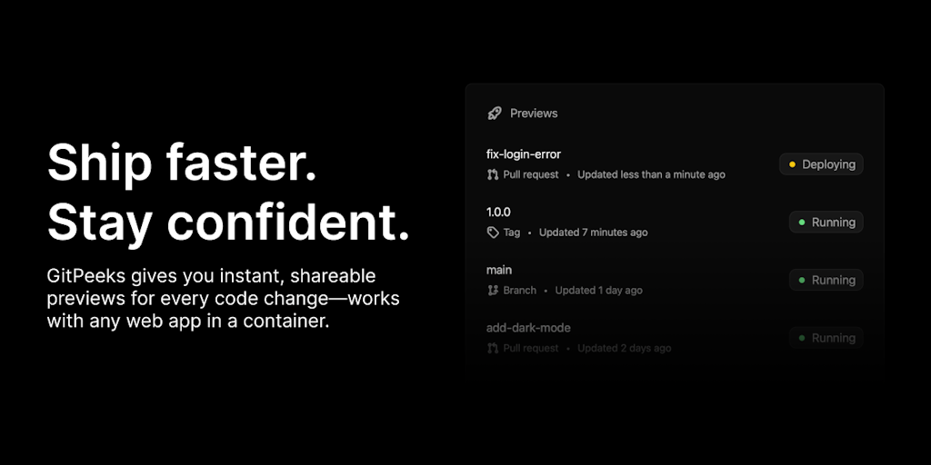 Automate your preview environments for faster collaboration. With GitPeeks, developers, designers, and teams can share real-time feedback on every change effortlessly. Get started today — managed or s