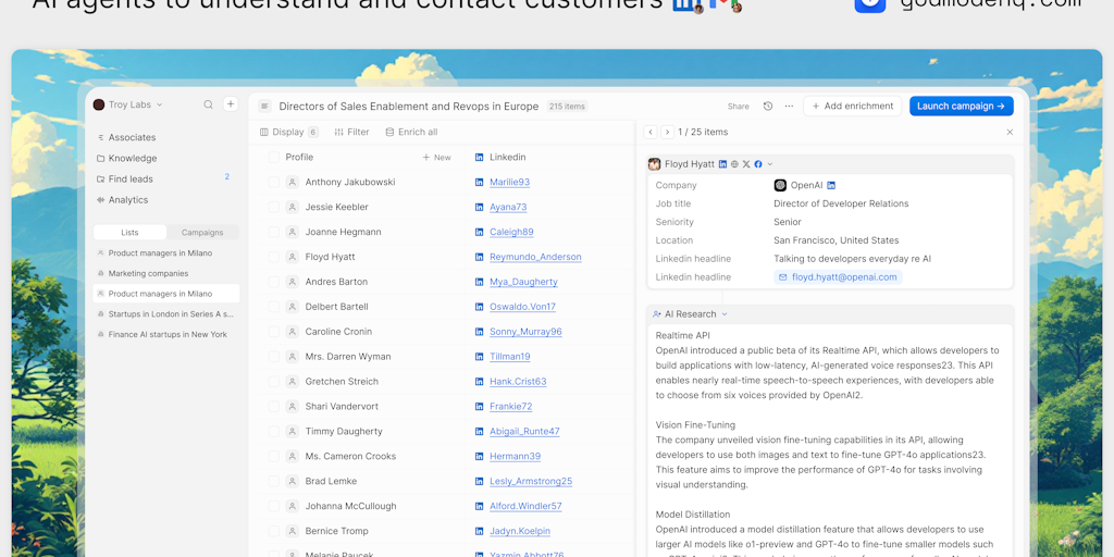 We are building the AI coworkers of the future, starting with sales. We are building against the dying spray and pray outbound sales motion. Our AI agents deliver any kind of research on your leads so