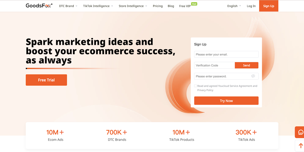 GoodsFox is your go-to platform for website ad intelligence, covering 49 countries and 10 ad channels, such as Meta, Google, and TikTok. Get deep insights into markets, competitors, and ad creatives t