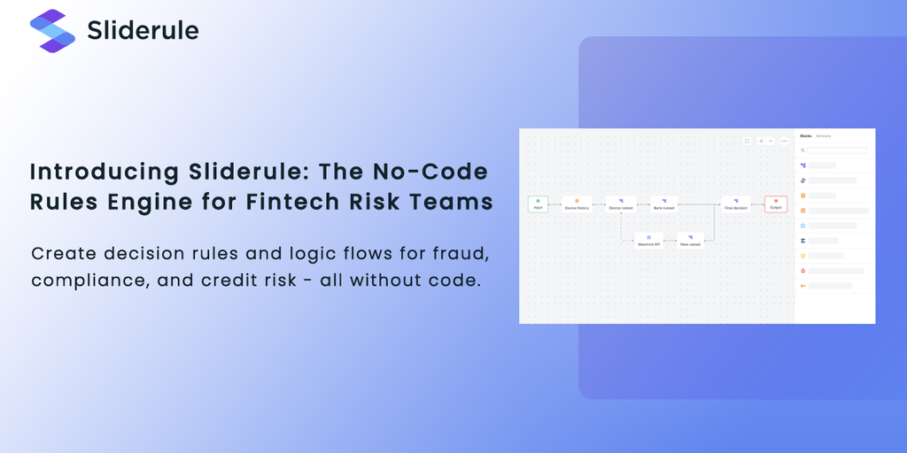 Sliderule is the no-code rules engine for fintech risk teams. Build automated decisioning logic for fraud, compliance, and credit, with built-in data connectors and real-time analytics. Stop hard-codi