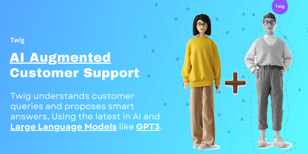 Use GPT3 to reduce customer support costs by 30%. Twig understands customer queries and proposes smart answers from deep within the documentation, knowledge bases, and historic customer support ticket