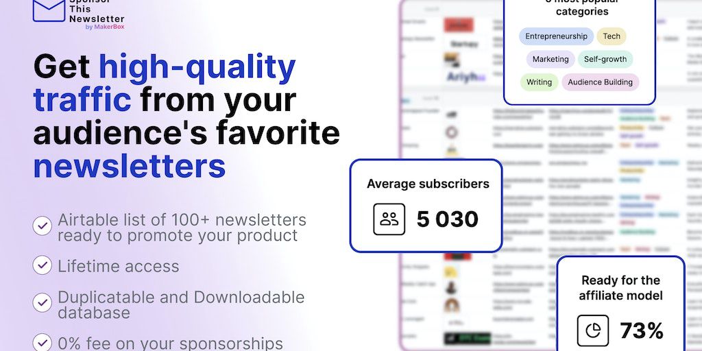 Get high-quality traffic from your audience's favorite newsletters. Explore the database with 100+ newsletters ready to promote your product. Sell without “selling”.