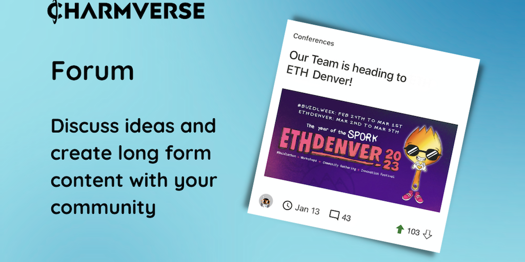 CharmVerse is the solution for token communities to build relationships, work together and vote. CharmVerse is excited to introduce our Forum feature - a forum that is gated by your tokens and NFTs!