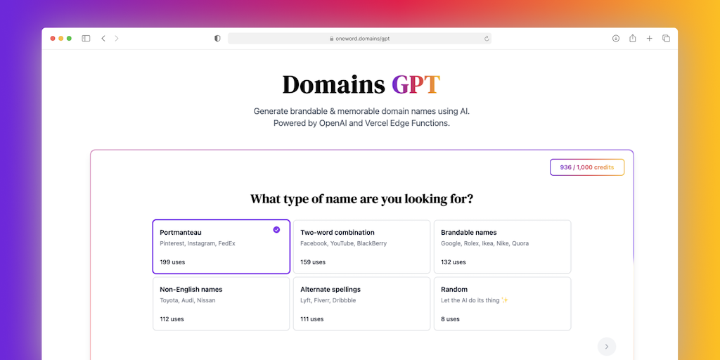 DomainsGPT - Generate brandable & memorable domain names using AI