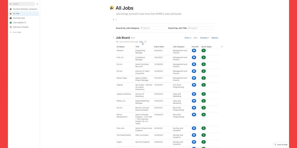 * Use this tool to find remote job postings across various roles and job functions * Keep track of your favorited jobs and applications * Manage recruiting process to prep for interviews * Schedule up