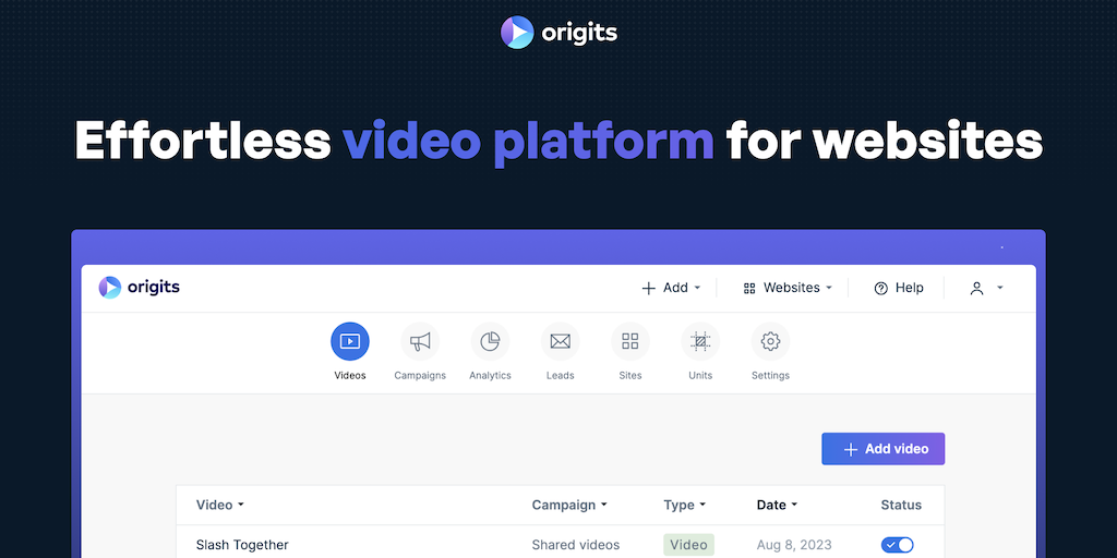 Origits makes it easy to play and manage videos on sites. 📺 High-quality playback without ads ⚡️ No-code UI to setup player 📈 Analytics & built-in marketing tools 🧲 One JS tag to control everything Ma