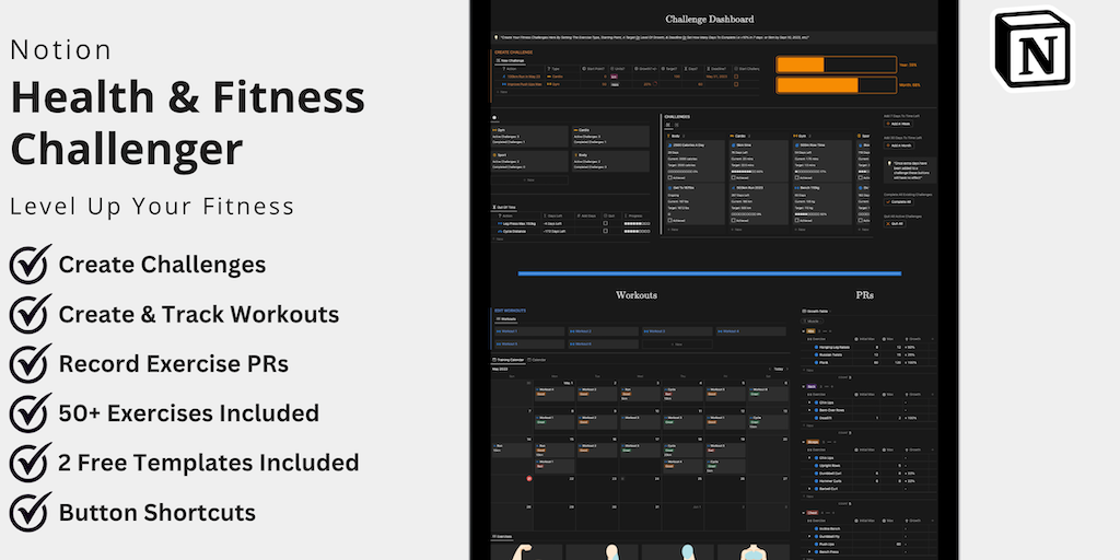 Unleash your fitness potential with Notion Health & Fitness Challenger. Complete custom challenges, create workouts, track progress, and achieve your goals. Perfect for individuals and personal traine