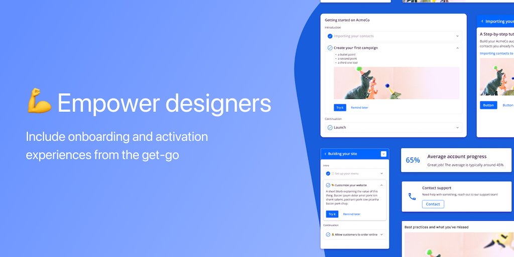 Download, create, and iterate on your product activation flows with a highly customizable component library. This is the most flexible library of components with pre-built variations and that makes it