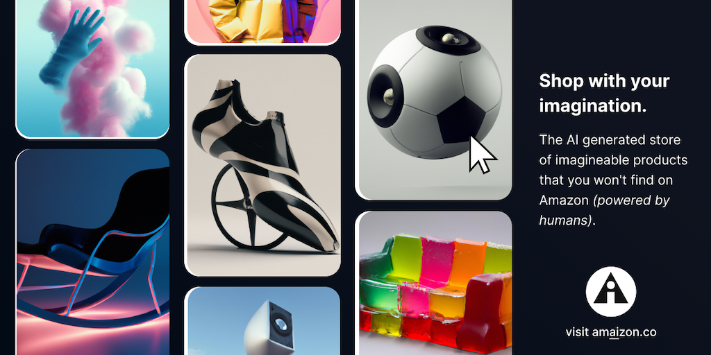 Kickstarter for AI generated products - Amaizon is an AI generated online store powered by human imagination. Get your hands on the latest products of imagination using DALL-E's AI image generator.