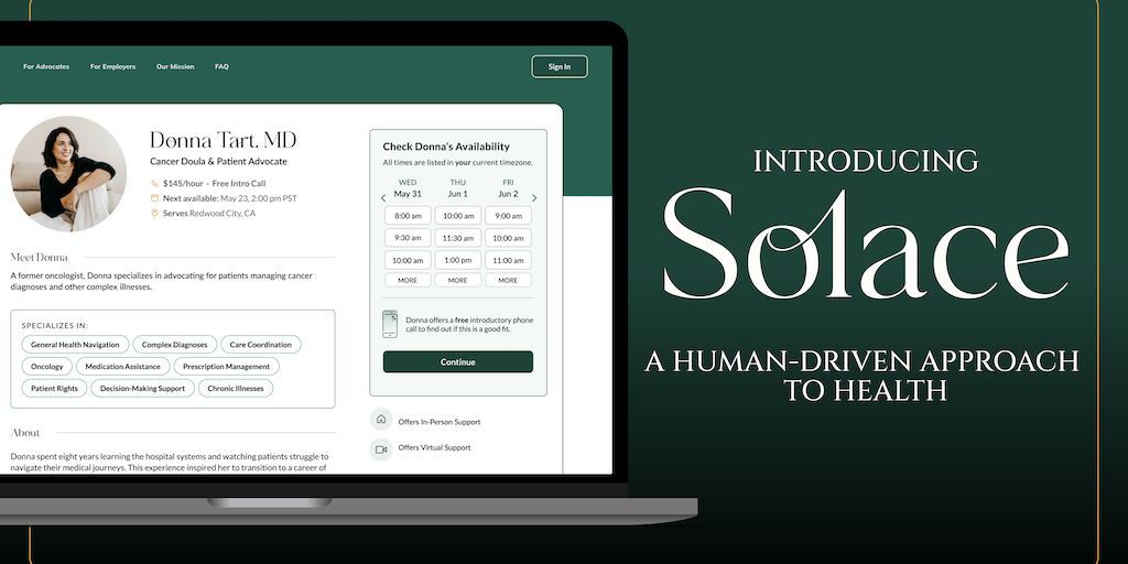 Solace is a healthcare advocacy platform that connects patients & families to expert care advocates who untangle the complexities of the healthcare system. Get matched with your expert today and disco