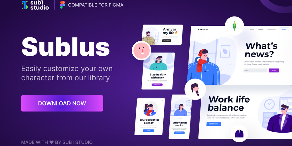 Sublus is an illustration product that can be easily customized with more than 120+ components. You can create characters, avatars, or adapt to the existing scene! *psps it's totally free😽