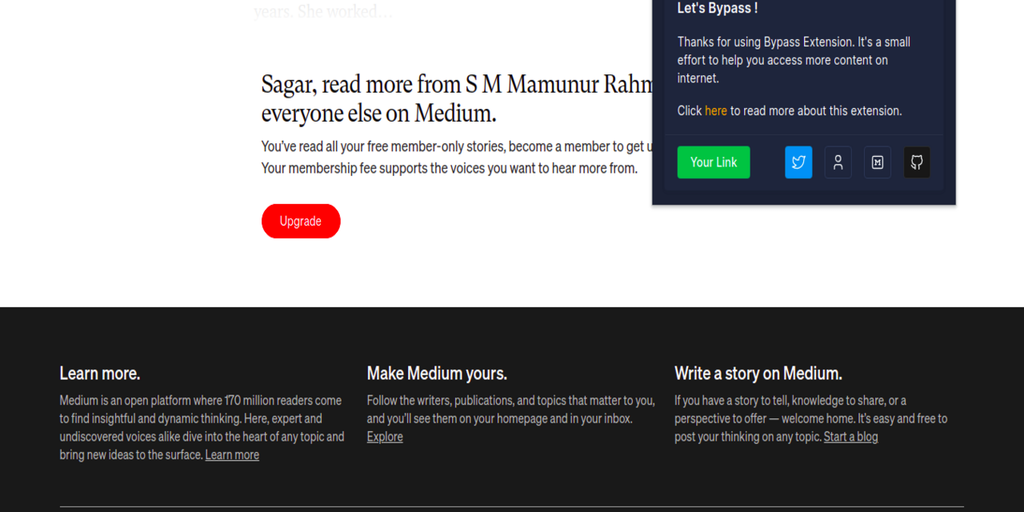 Bypass Paywall is a browser extension that allows you to read content that is behind a paywall on websites or blogs etc. What this extension does is show you the cached version of the website without