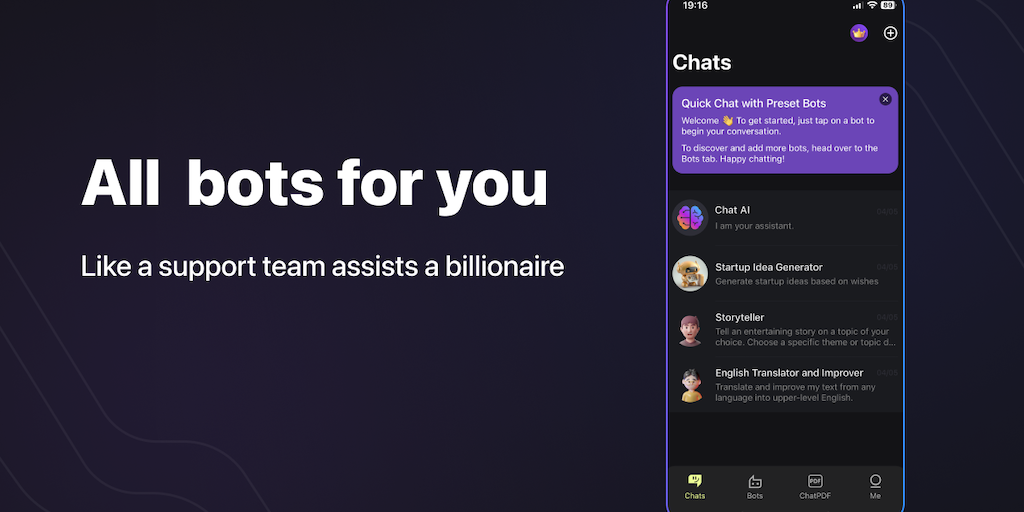 ChitChat -Whatsapp for bots &ChatGPT iOS - Chat with all your bot friends in one place, including PDFs | Product Hunt