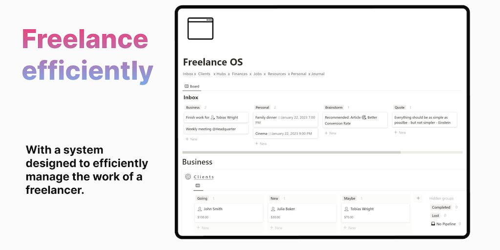 Freelance OS is an all-in-one system to manage your entire freelancing business.