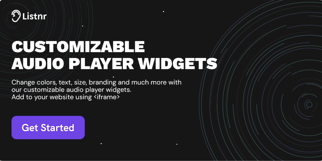 Listnr Audio players help you easily add audio functionality to your blog posts and websites. Our Audio players can be customized easily according to your website branding, and load in under 1 second.