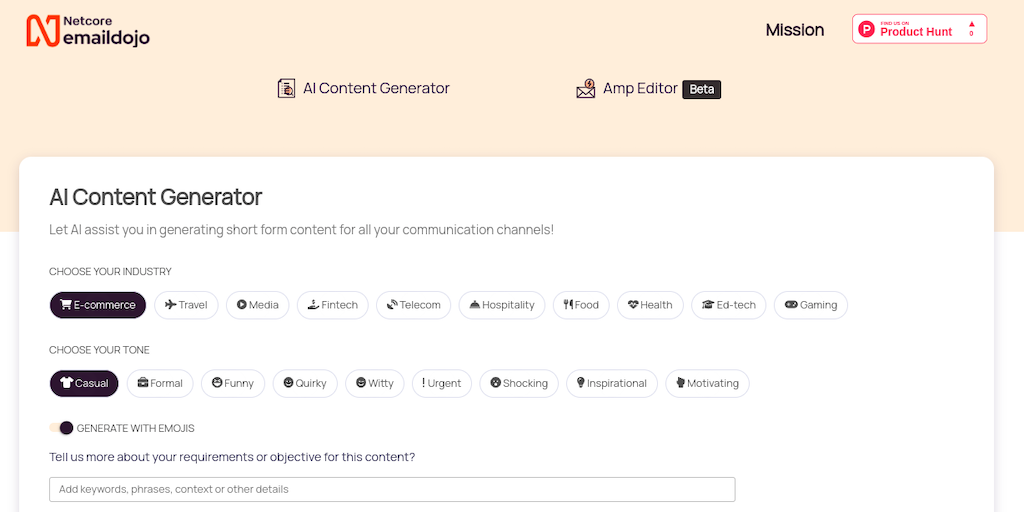 Emaildojo - OpenAI powered content generator and AMP email editor | Product Hunt