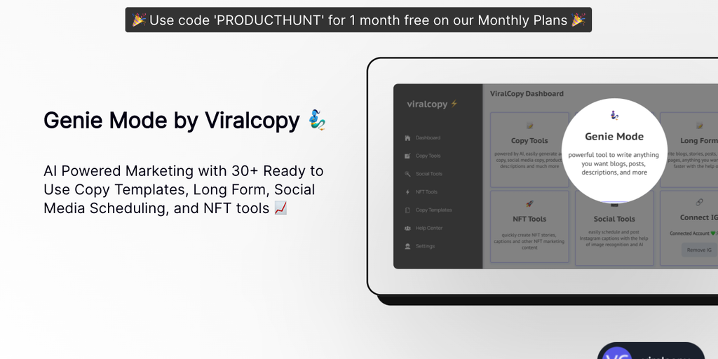 Genie Mode by Viralcopy - AI marketing with 30+ copy templates, scheduling, NFT tools | Product Hunt