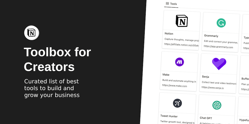 The Toolbox for Creators is a curated list of best tools to build and grow your business