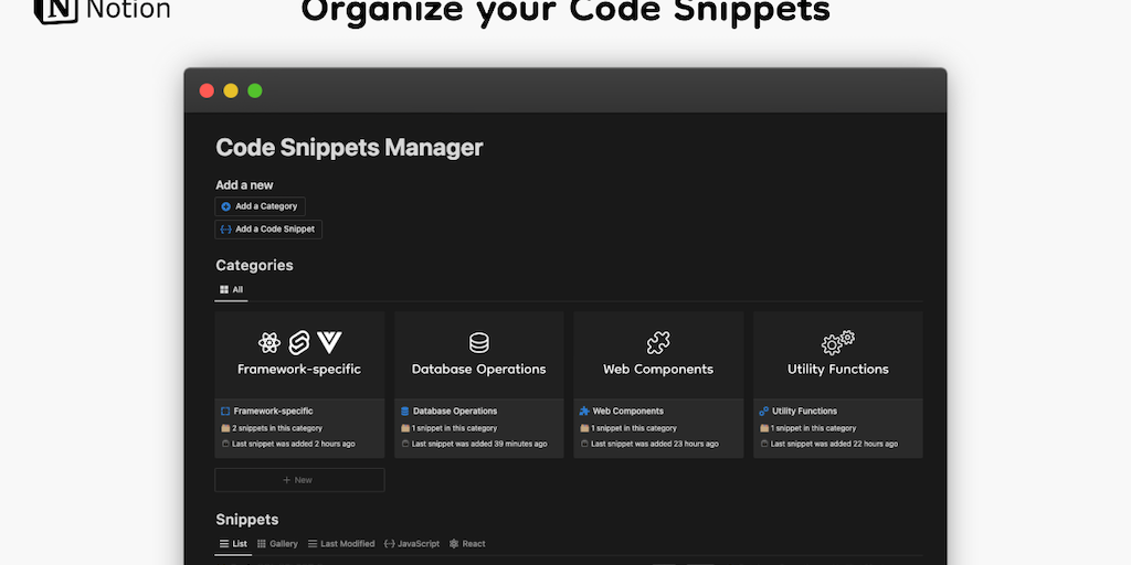 Code Snippets Manager - Organize your code snippets in Notion | Product Hunt