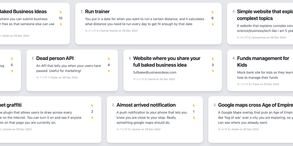 Half Baked Business Ideas - Find inspiration for your next big thing | Product Hunt