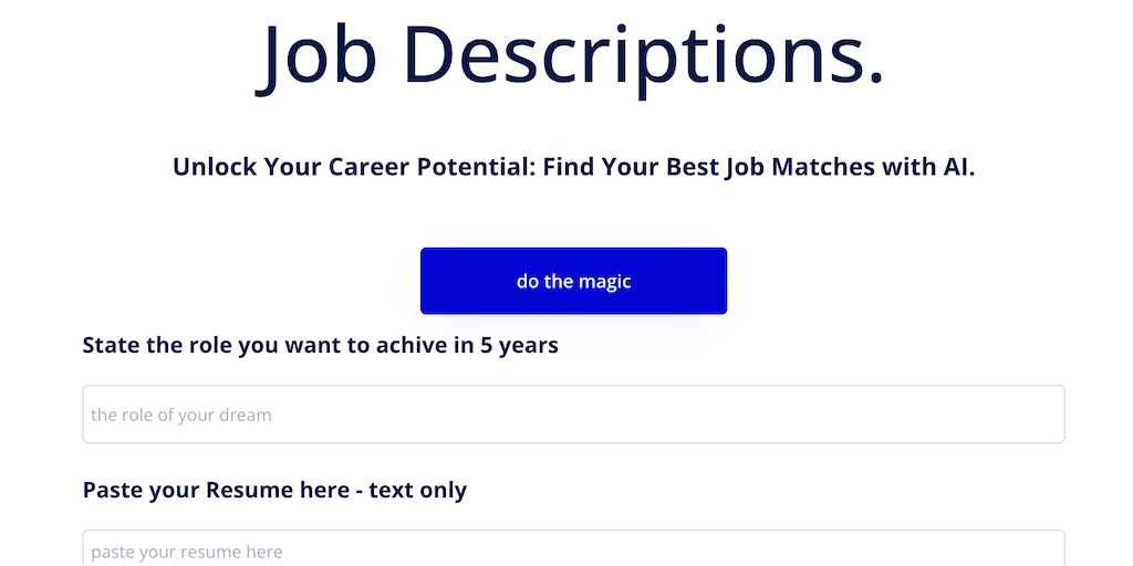 Find your dream job and achieve your career goals with our AI-powered platform. Get personalized job matches, guidance, and a 5-year action plan.