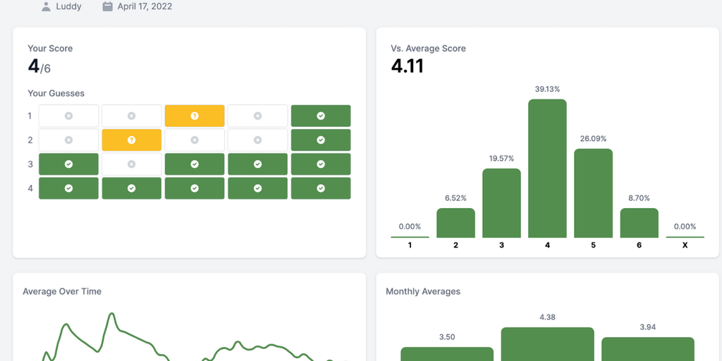 Save My Wordle makes it so you'll never lose your Wordle stats again. Save your scores, see your stats on any device, and get more advanced data such as averages and trends. On top of that, create lea