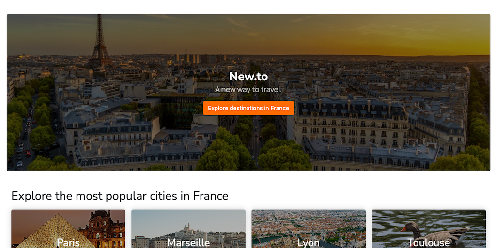 New.to was built from the frustration of limited results on other travel platforms. New.to aims to be a one-stop shop for everything you can do in your destination. From live-events, to places to stay