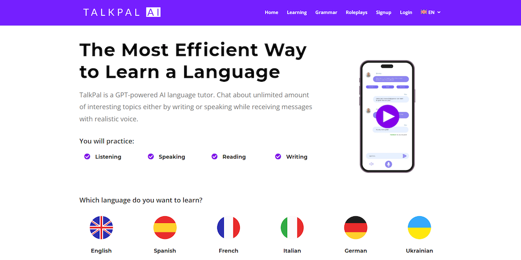 TalkPal - The most efficient way to learn a language | Product Hunt