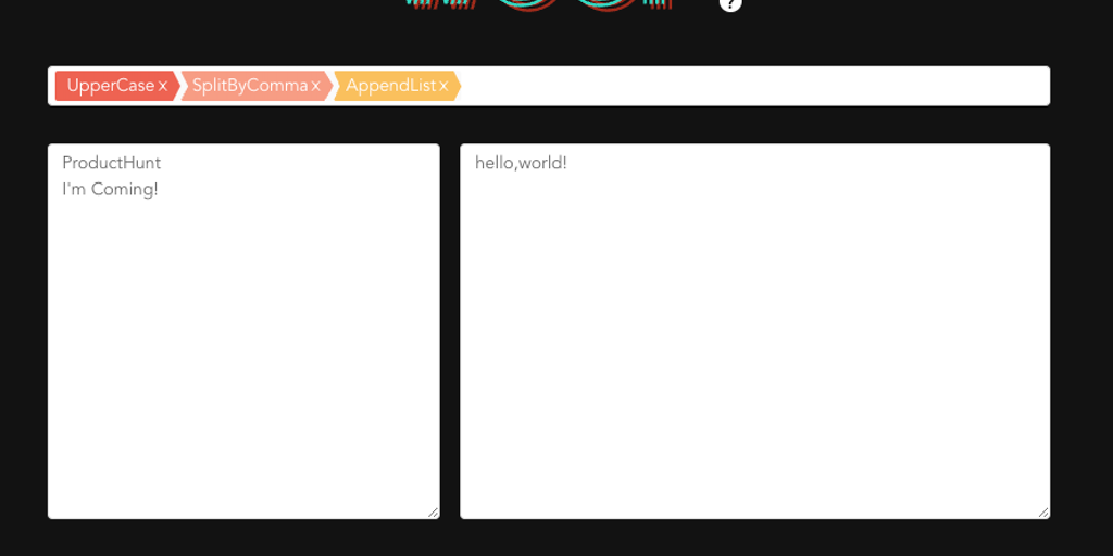 A text operation pipeline tool powered by javascript inspired by Boop. You may transfer plain text to other fomat, just pick and combine functions from function bar. Woop is a static web app, all js f