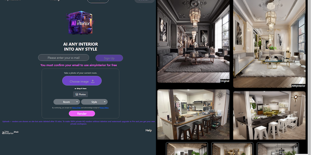 This new web app utilizes AI to turn any interior/room into any style with a single photo. Renders take approximately 30 seconds and our service is currently free for a limited time.