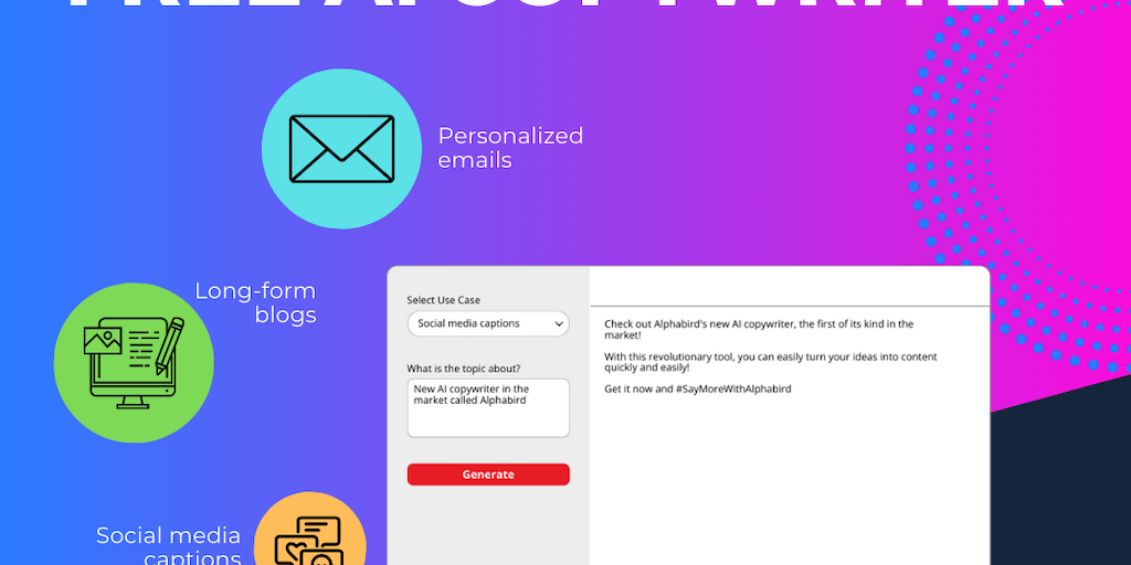 Alphabird is a free AI copywriting tool that offers all of the same powerful features as other AI copywriters in the market without the hefty price tag - we're free to use!