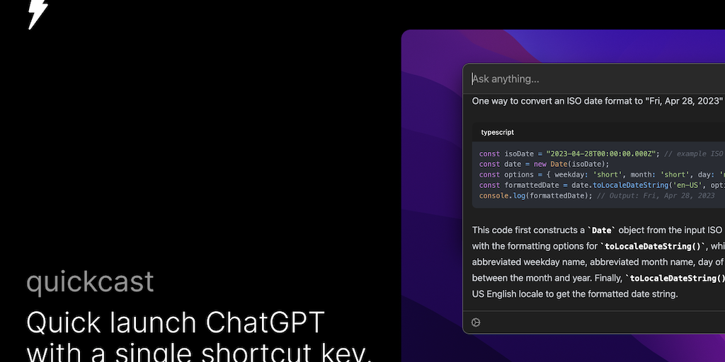 QuickCast - Quick launch ChatGPT with a single shortcut key | Product Hunt