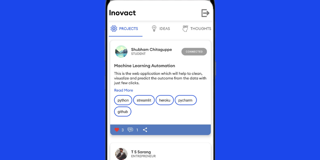 Inovact Social enables its users to find the right team and mentor in just 2 steps. Users get recognized solely based on their skill set and not mere certificates. A strong support system for students