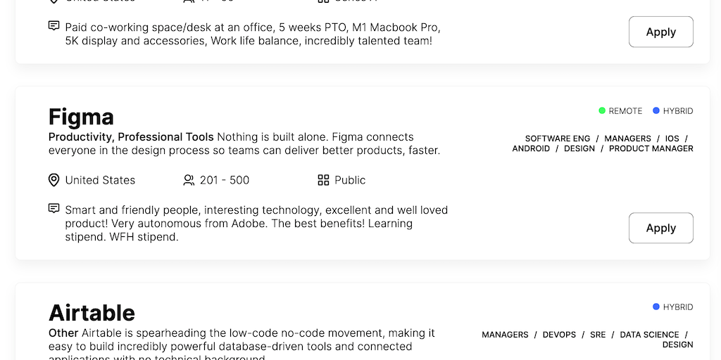 Crowd sourced opportunities powered by the employees working at tech companies — not the recruiters.