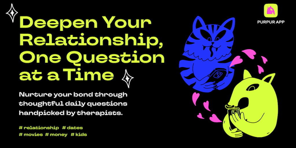 Purpur is a therapy-game. Dive into our daily thought-provoking question or explore packs of relationship questions designed with psycotherapists. Get ready for a fun and game-changing self-therapy ex