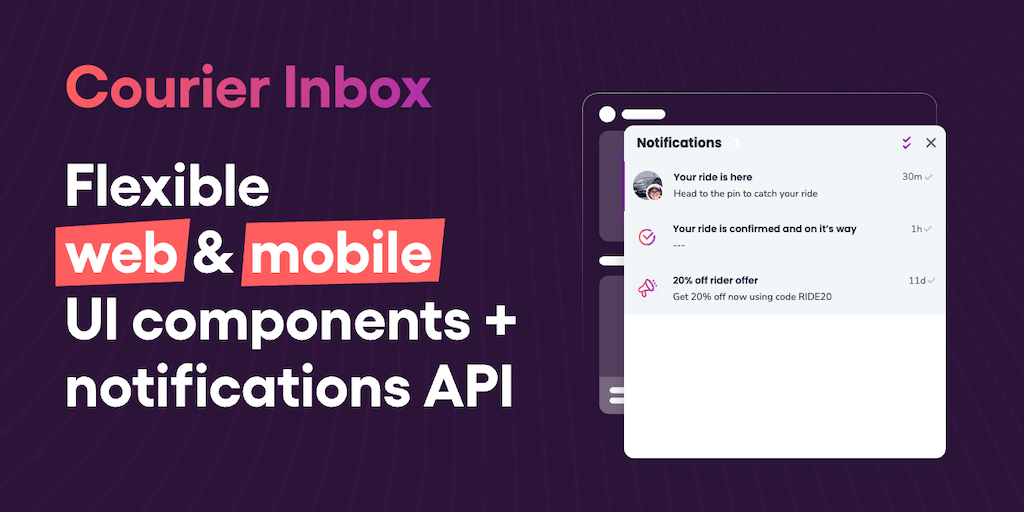 Courier inbox is an in-app notification center for web and mobile apps. Use pre-built UI components and a powerful API to design a notification experience that perfectly matches your app and helps dri