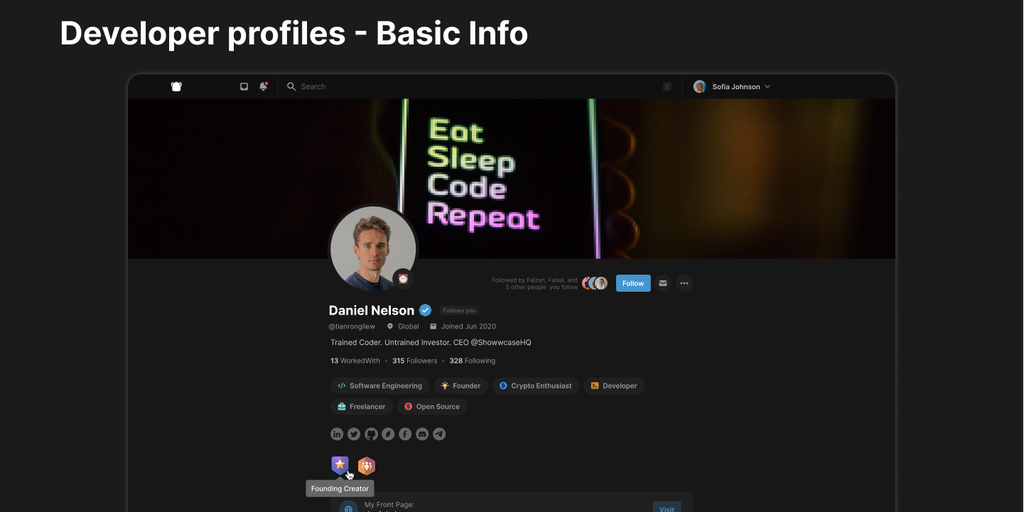 Showwcase is a professional network built for people who code. We help developers represent who they are holistically, find a community of like-minded individuals, and gain access to unique developer