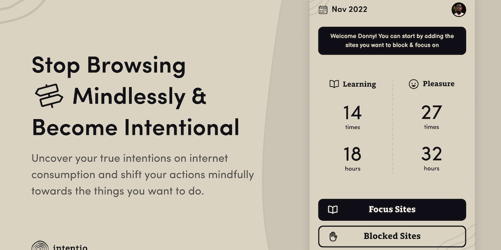 Intentio - Stop mindless browsing & become intentional | Product Hunt
