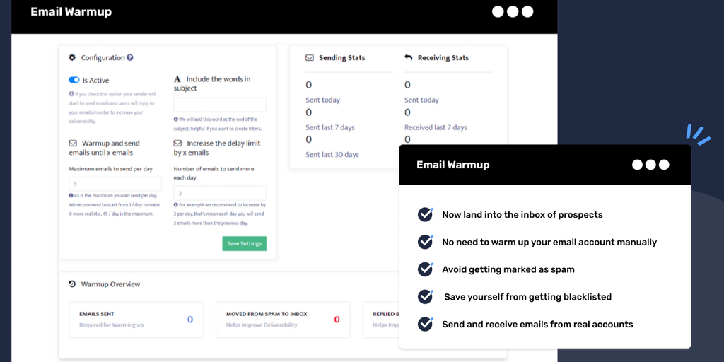 Automated email warm-up tool to boost email deliverability and stop getting caught by spam filters. Send and receive emails from real accounts, fully automated and always land in the box.