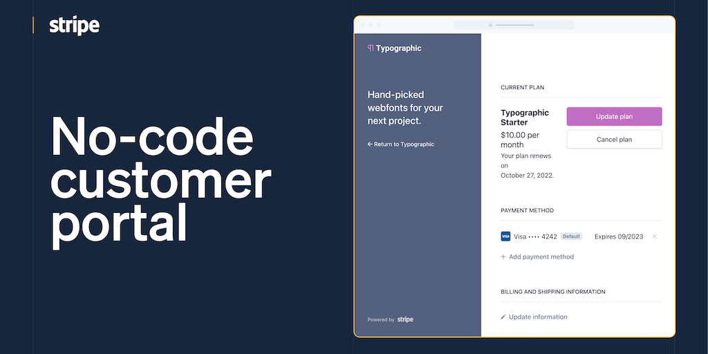 Stripe No-code Customer Portal - Share a link to let customers manage billing details | Product Hunt