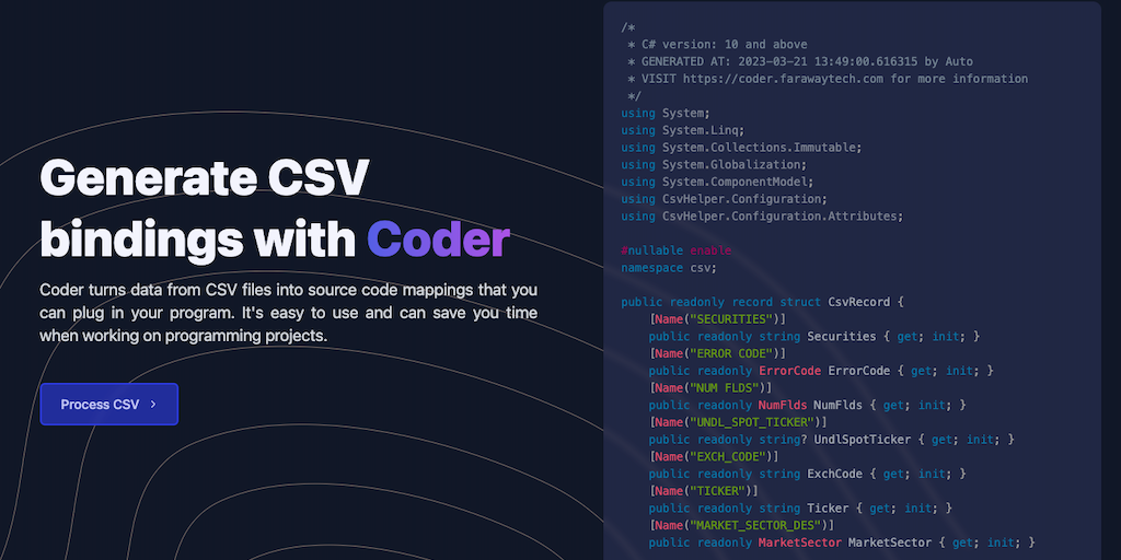 Coder - Coder turns data from CSV files into C# source code mappings | Product Hunt